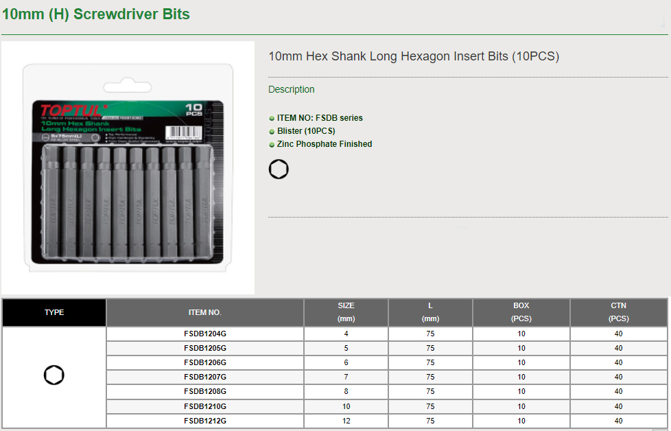 10mm Hex Shank Long Hexagon Insert Bits