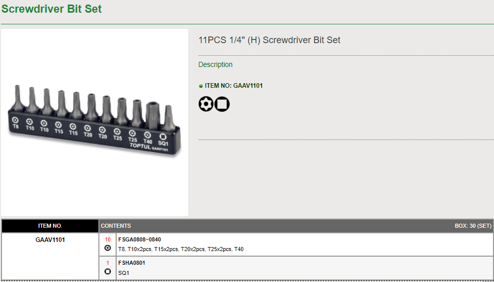 11PCS 1/4"(H) Screwdriver Bit Set