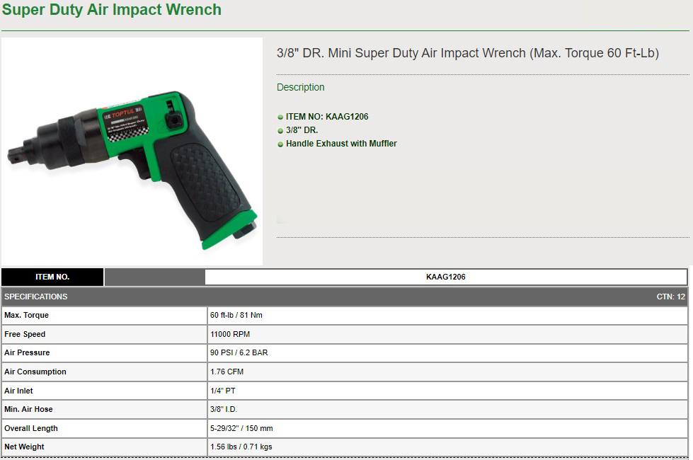 3/8" DR. -Mini Super Duty Air Impact Wrench