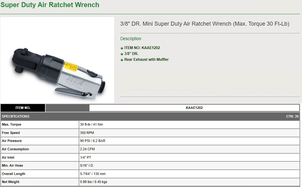 3/8" DR. -Mini Super Duty Air Ratchet Wrench