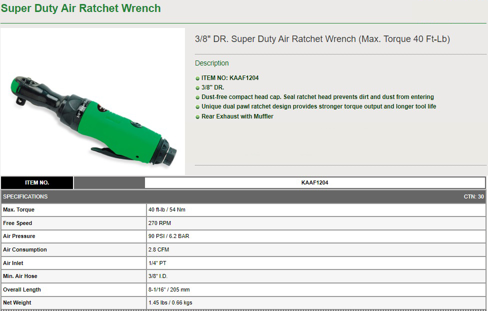 3/8" DR. -Super Duty Air Ratchet Wrench