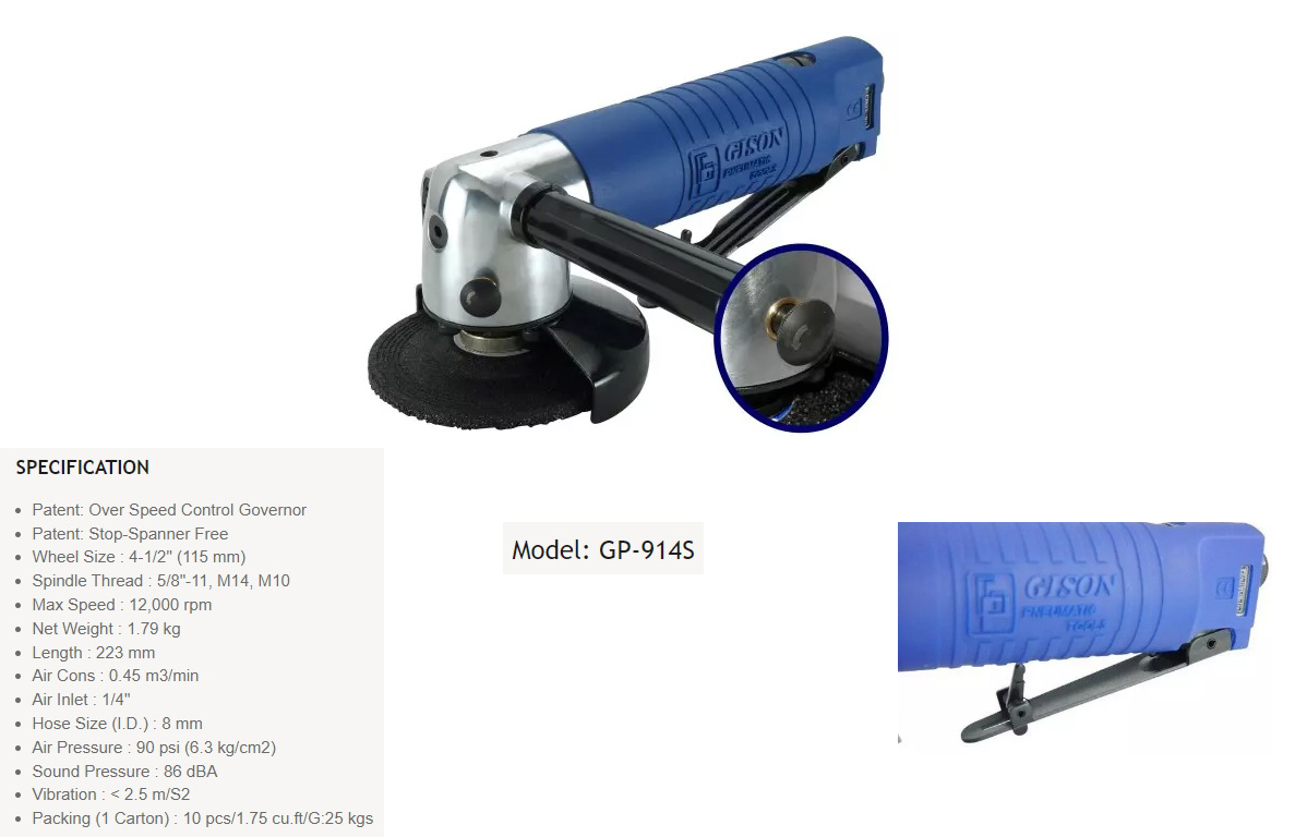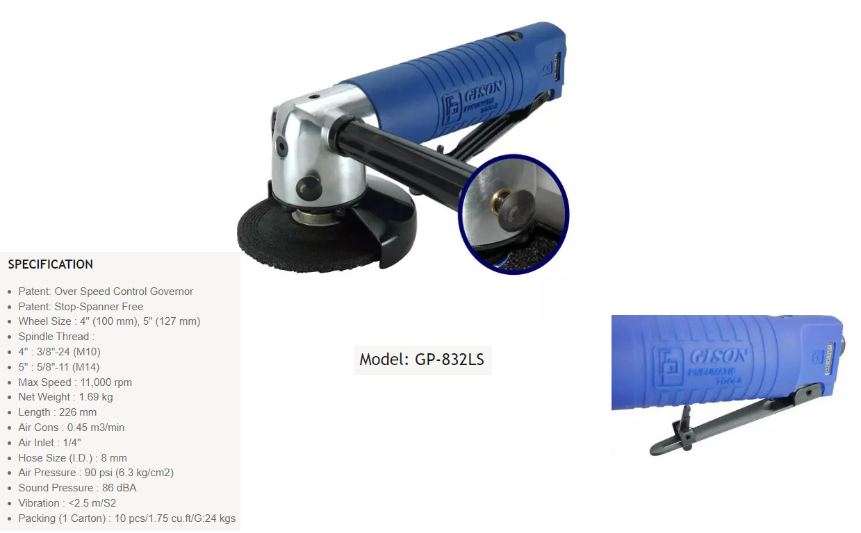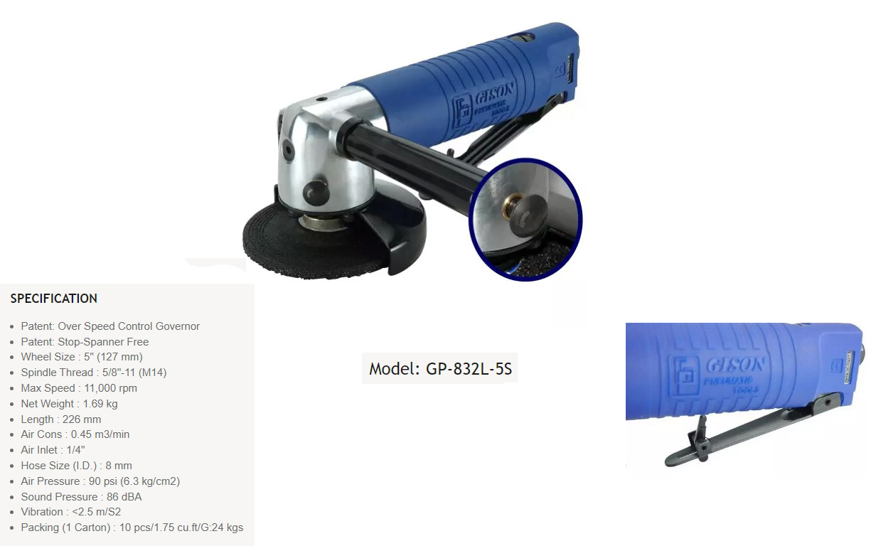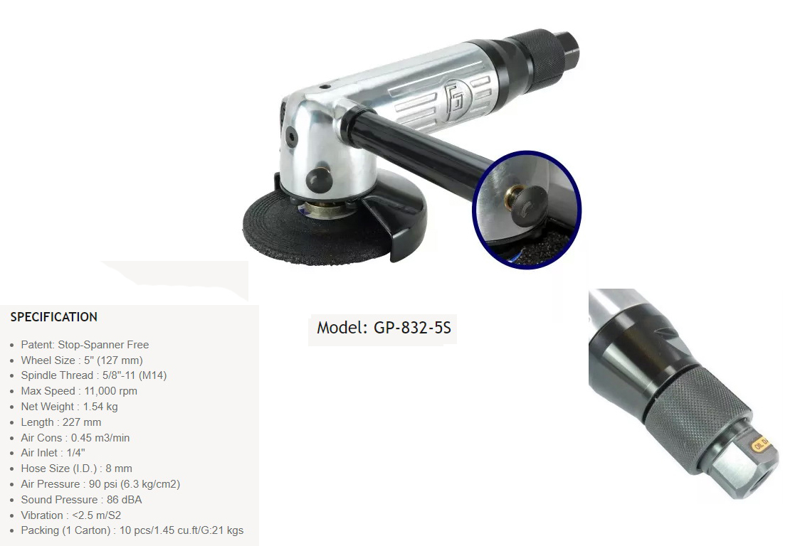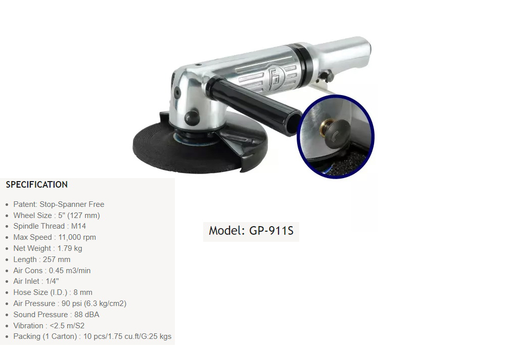 4",4-1/2",5" AIR ANGLE GRINDER (Stop-Spanner Free Series)