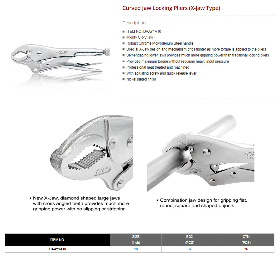 Curved Jaw Locking Pliers (X-Jaw Type) 10"
