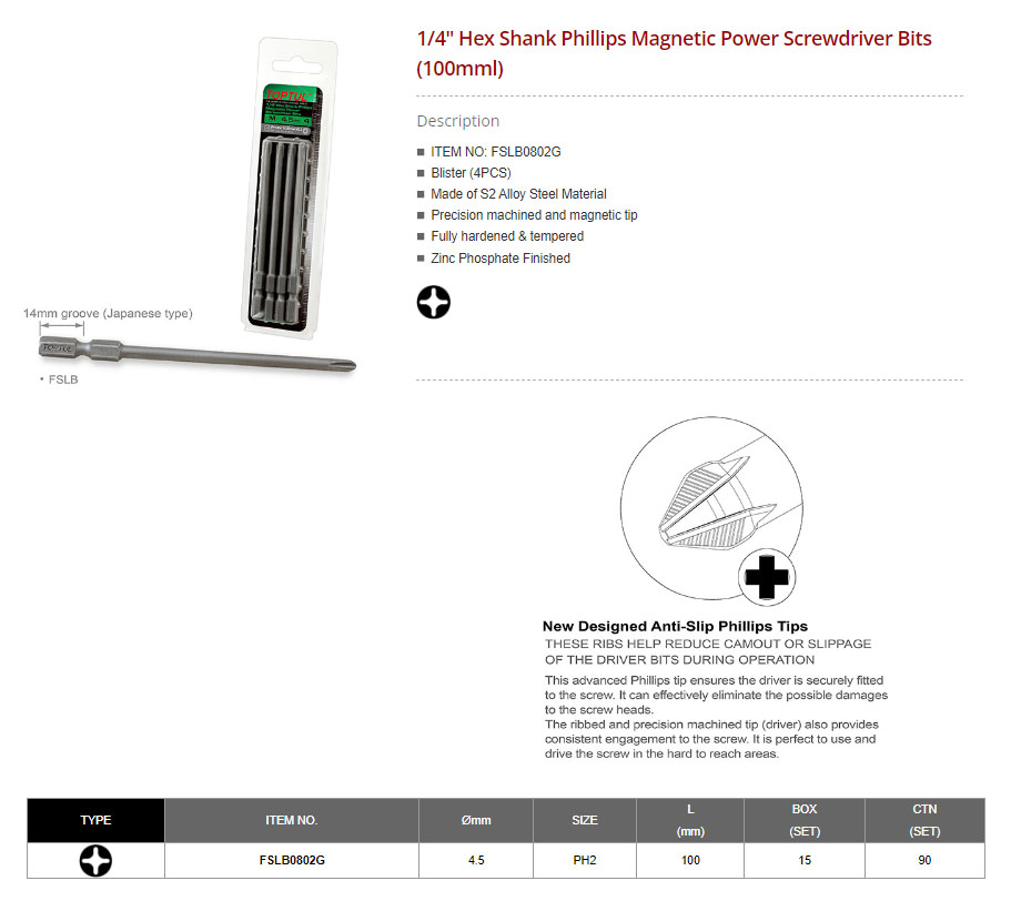 (L 100mm) 1/4" Hex Shank Phillips Magnetic Power Screwdriver Bits
