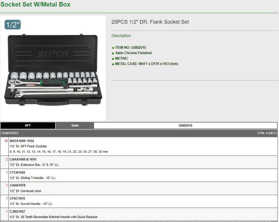 SIZE(mm) 25PCS -1/2" DR. 6PT Flank Socket Set