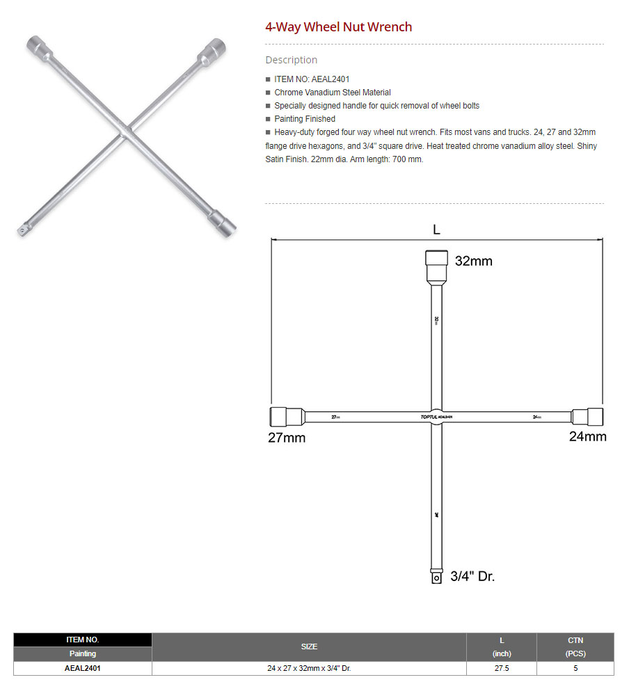 SIZE(mm) -4-Way Wheel Nut Wrench