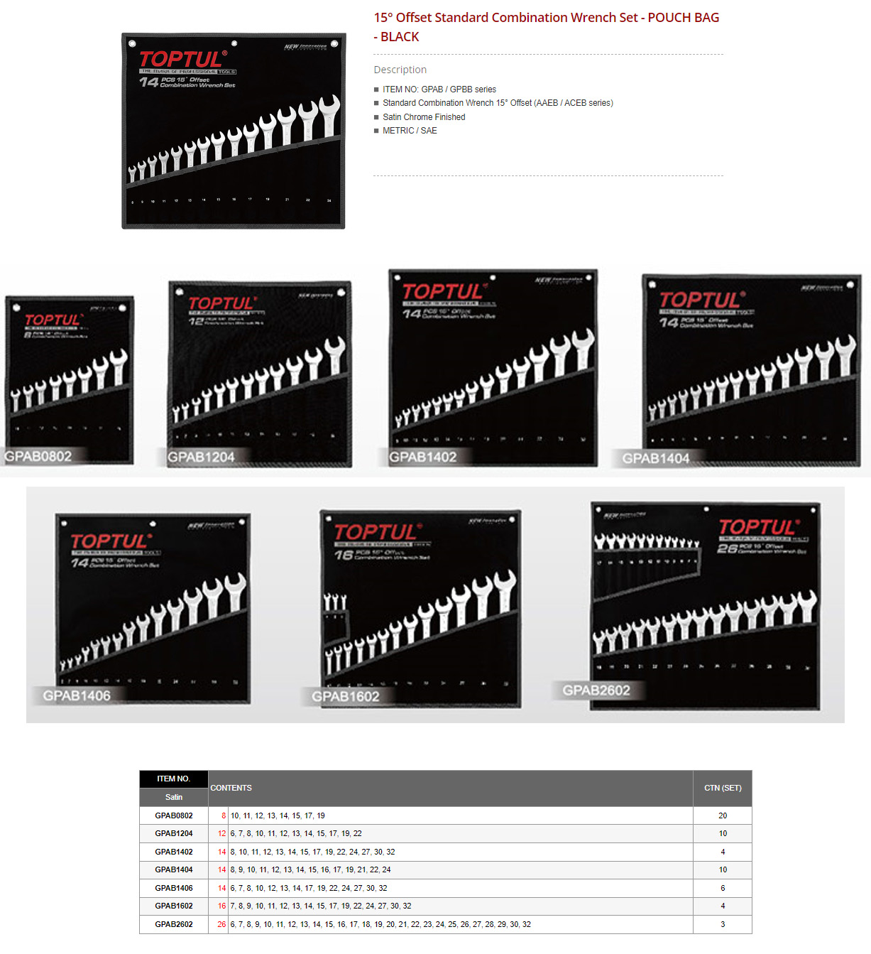 SIZE(mm) -POUCH BAG(BLACK) -15 ํ Offset Standard Combination Wrench Set