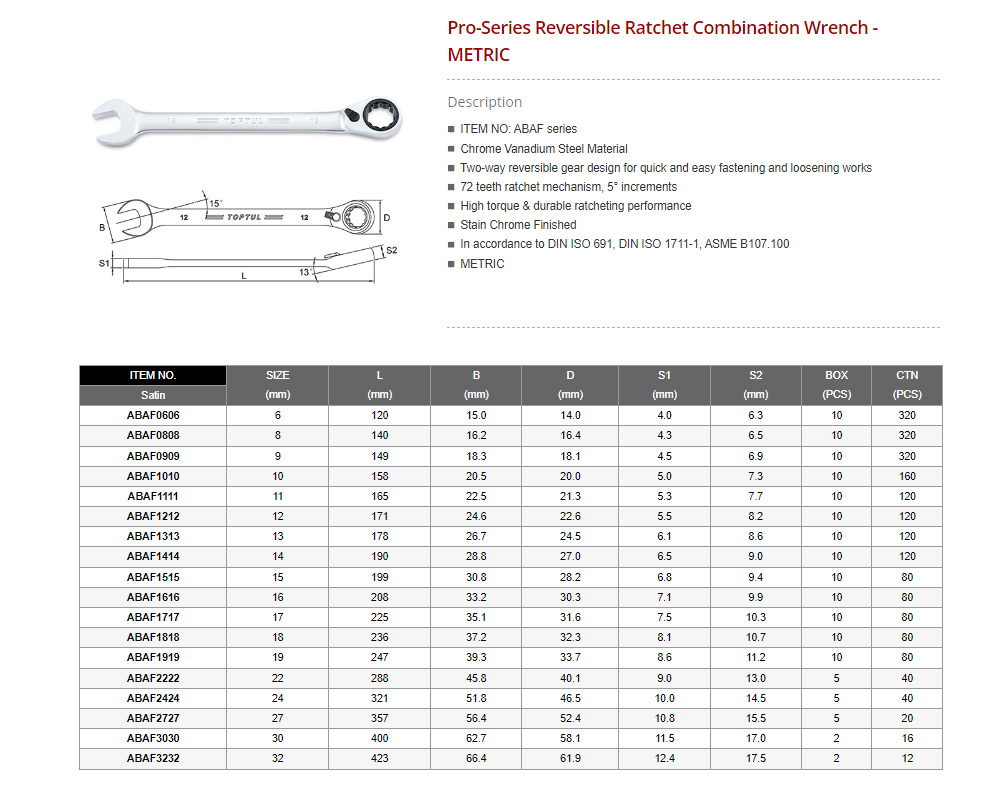 SIZE(mm) -Pro-Series Reversible Ratchet Combination Wrench
